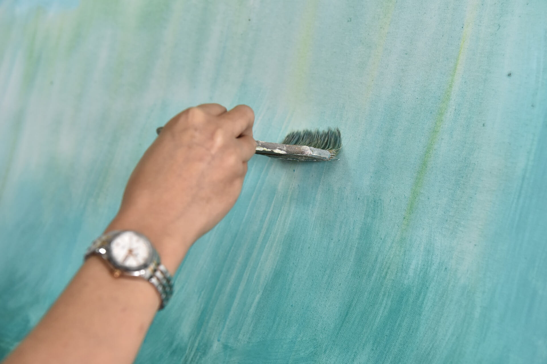 Motiv: Acryl Gemälde | Türkis, Beige | 100x75cm
